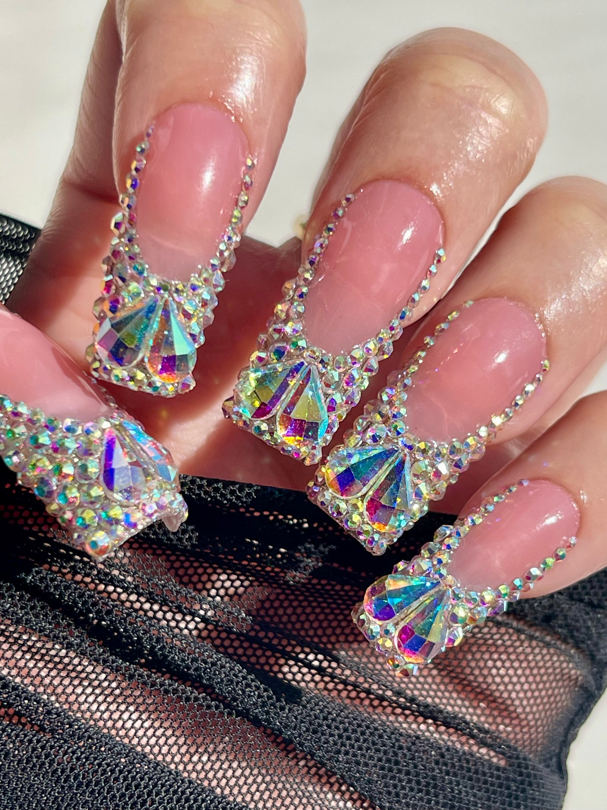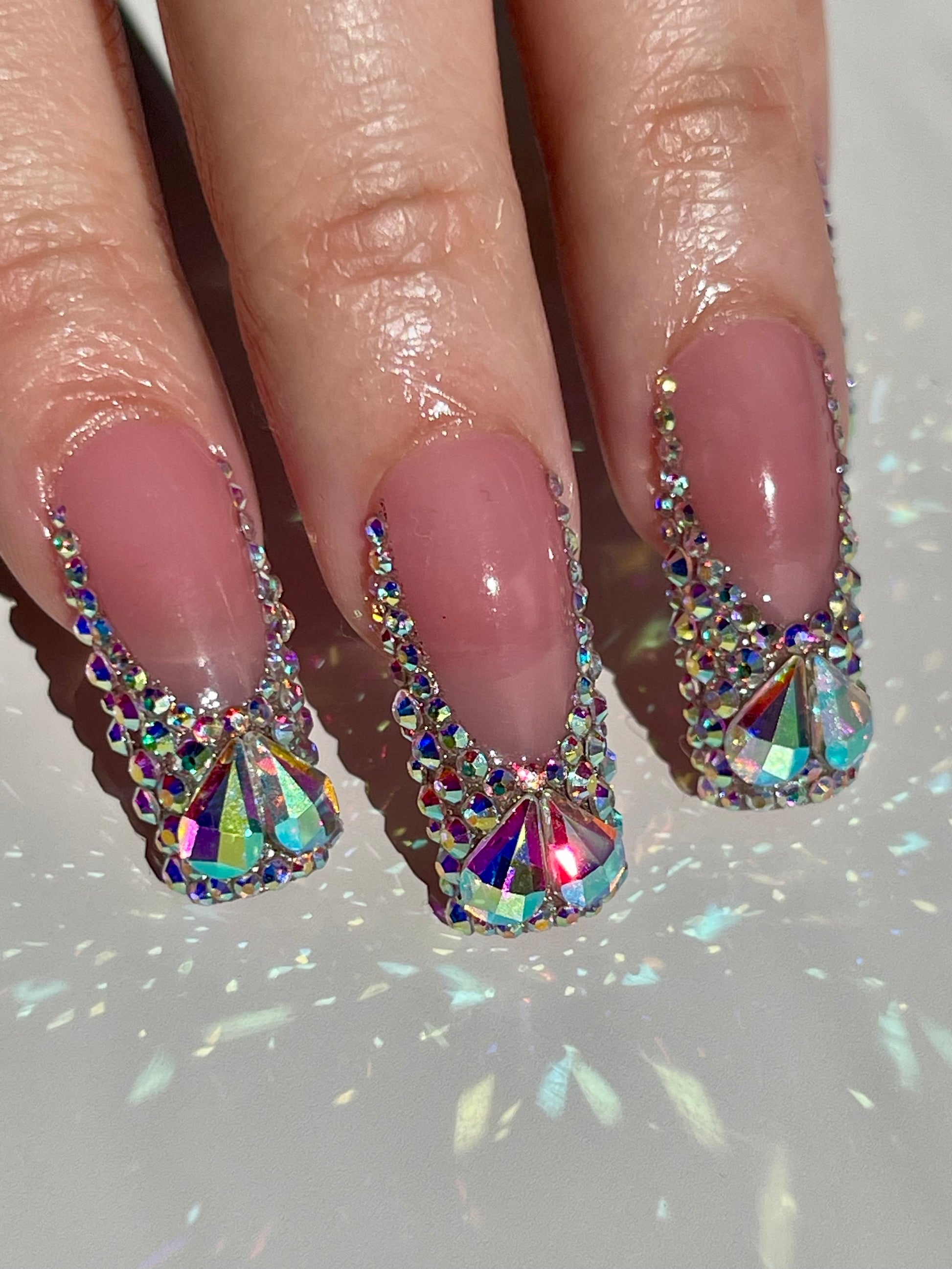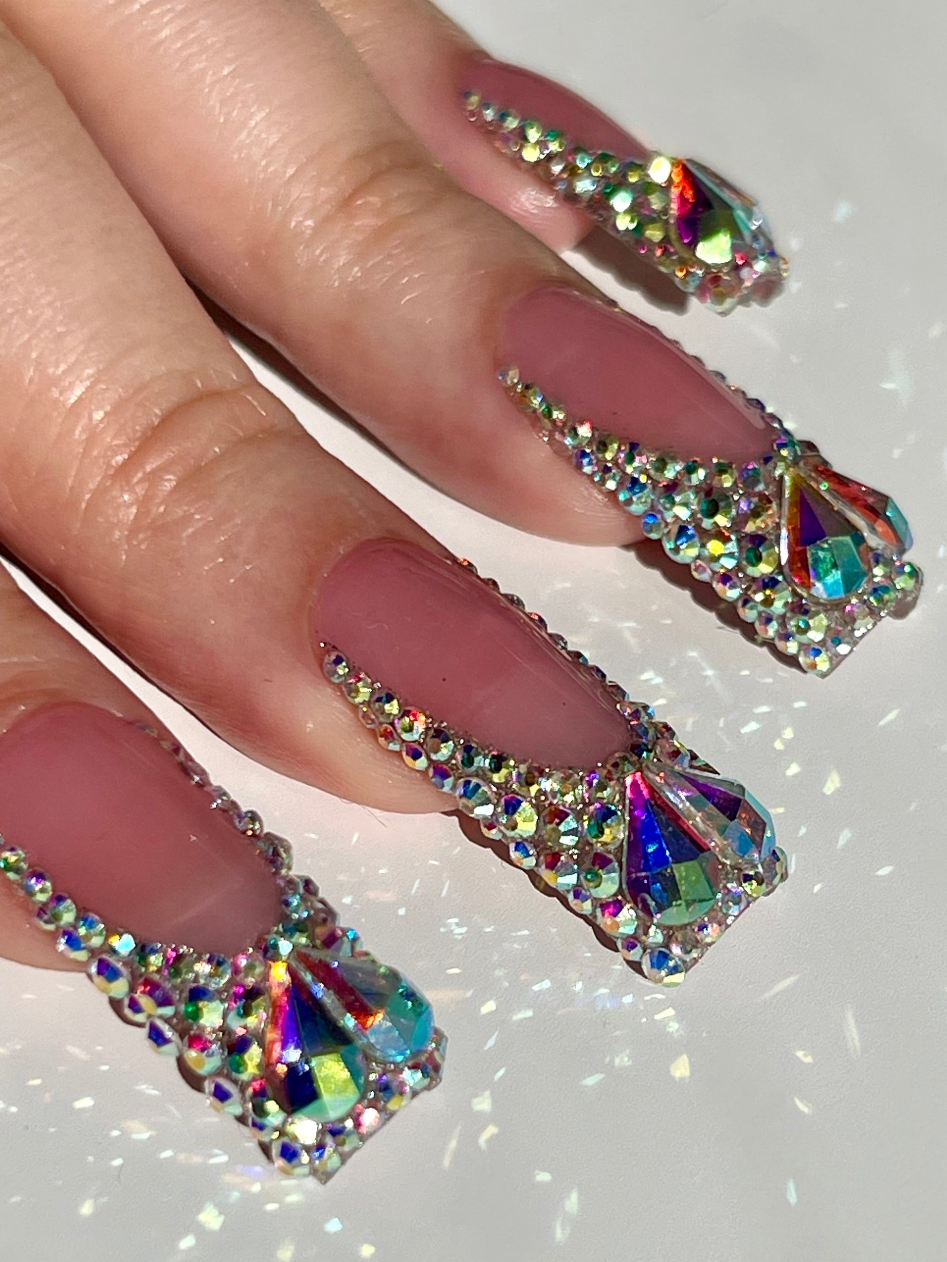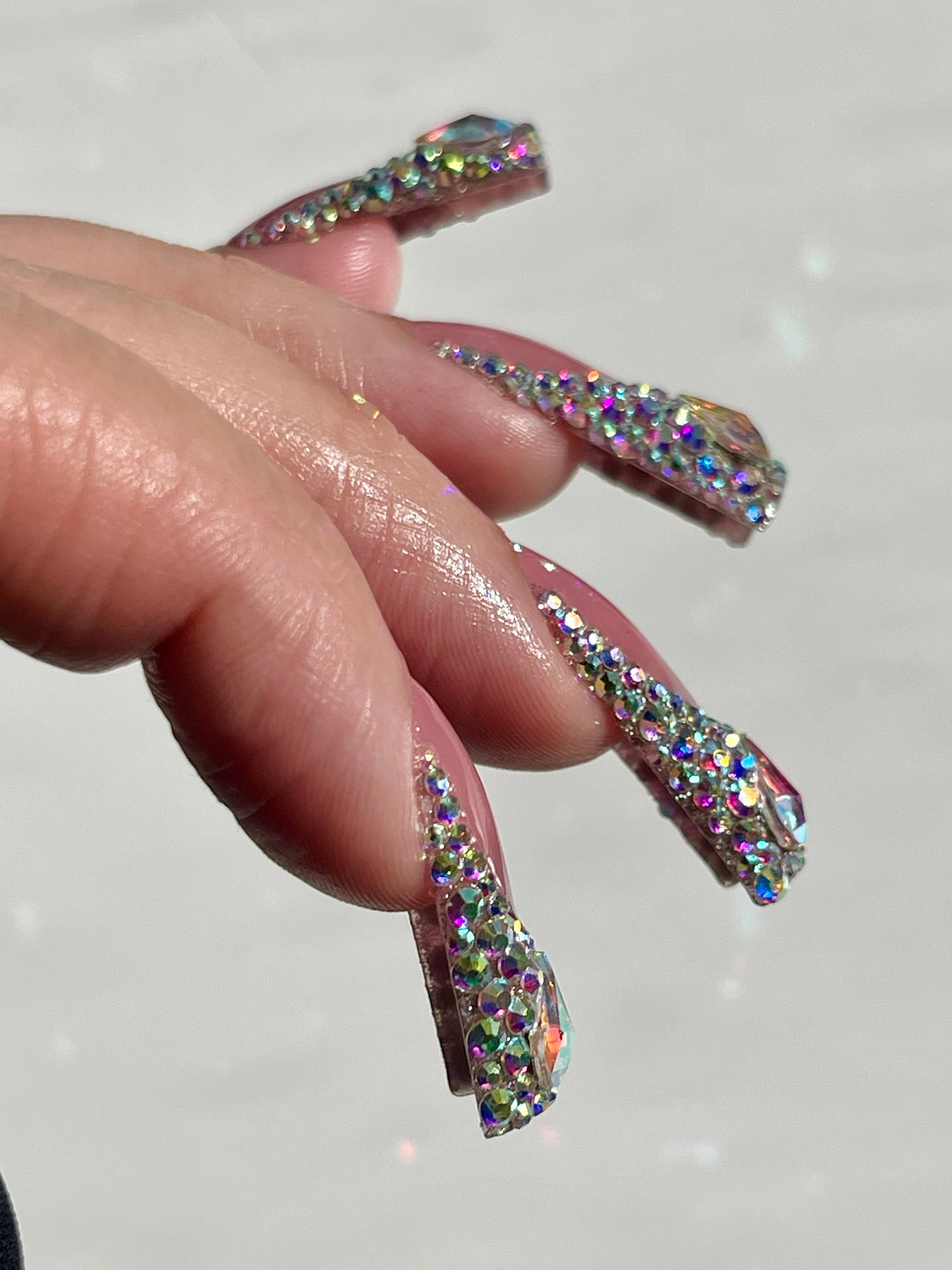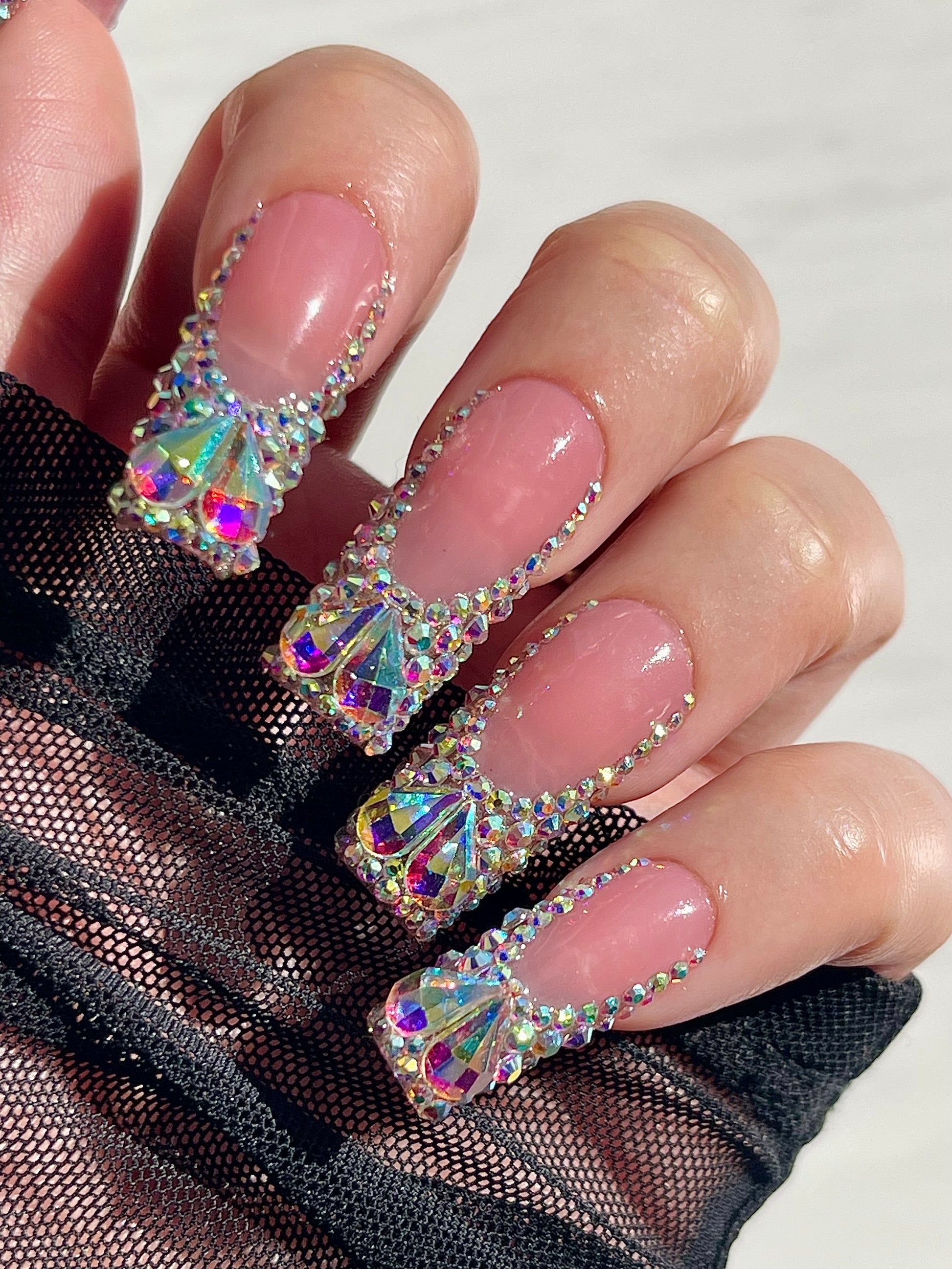 When subtle just won’t do, Her is the moment. This full bling French set takes the timeless elegance of a classic French manicure and turns it all the way up with dazzling, crystal-studded shine. Each nail is carefully designed to capture light from every angle—giving you a bold, luxurious look that’s impossible to ignore. Perfect for nights out, special occasions, or anytime you want your nails to steal the show.