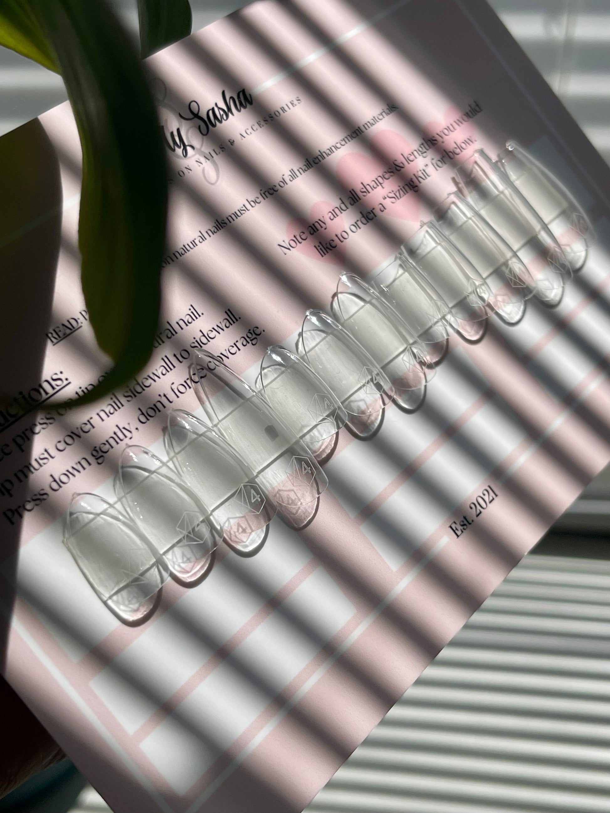 Each kit includes one nail of every available shape and length, beautifully labeled and ready to test. Try them all on to see what flatters your fingers, feels most comfortable, or matches your mood. Once you’re done, reuse them for sizing reference, or gift them to a friend who loves press-ons too!