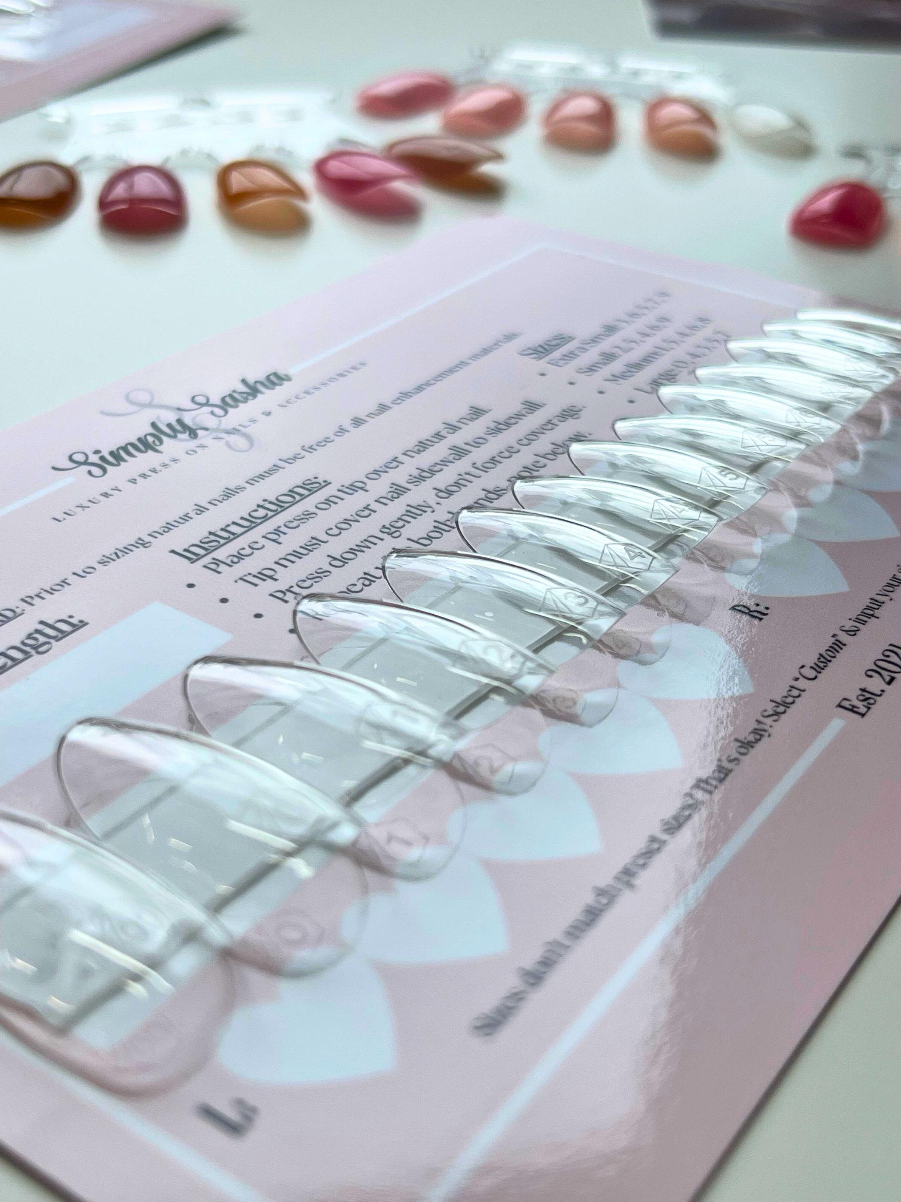 Find your perfect nail sizes for a custom, no-lift fit. Each kit includes all sizes for selected shape & length, labeled for easy reference. (Reusable for both friends and family.)