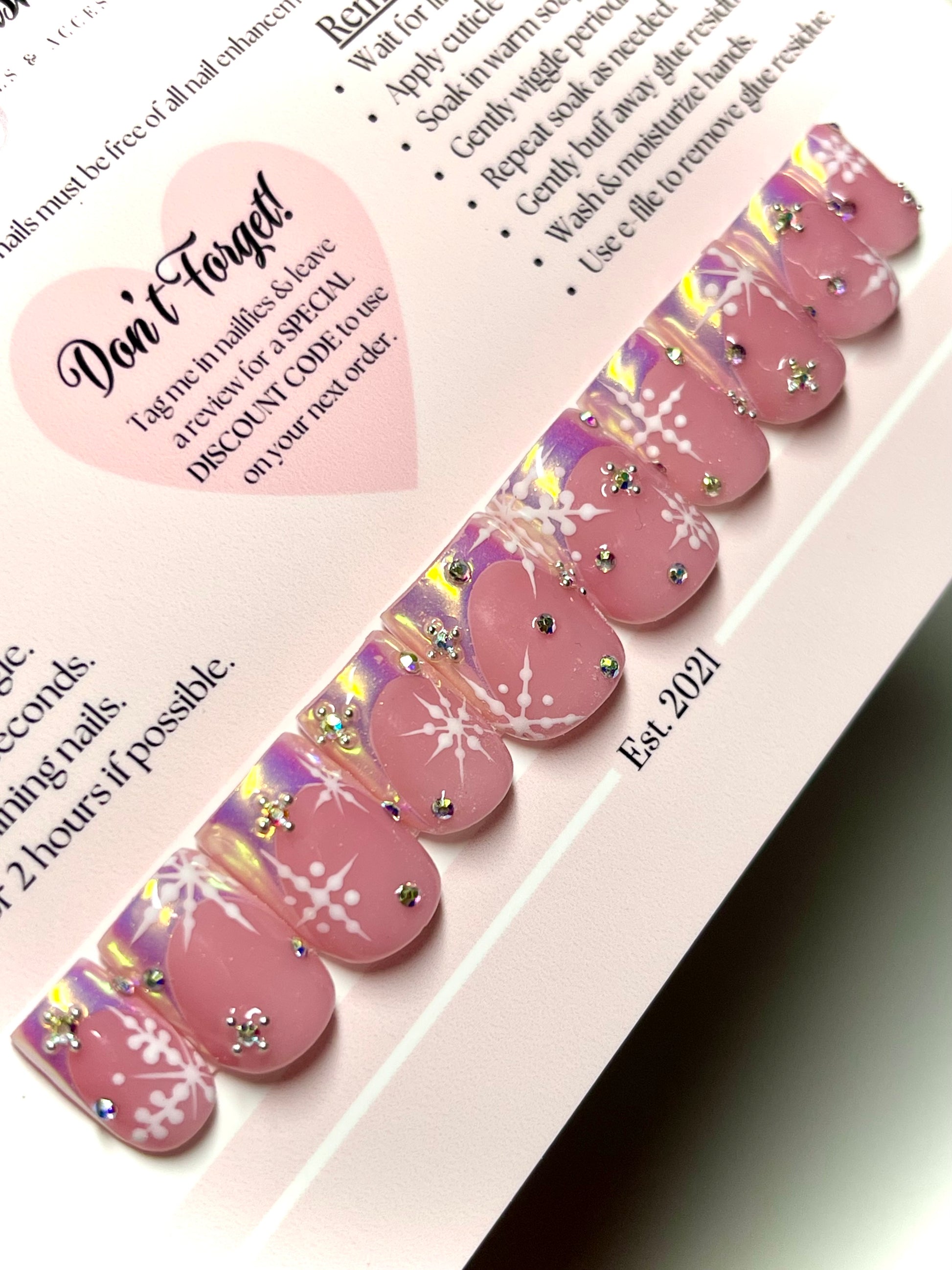 💖 Iridescent pink base with white snowflake designs